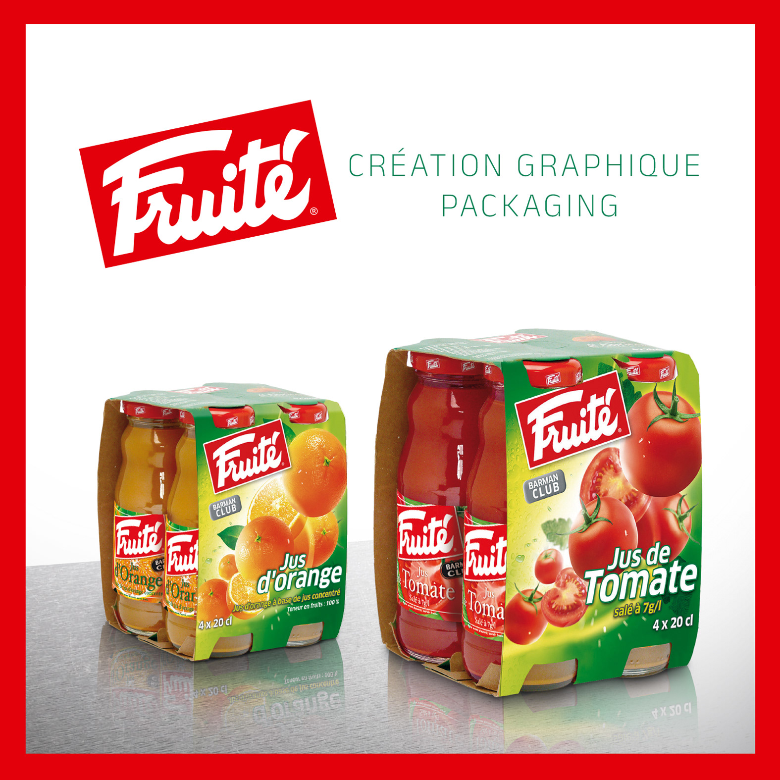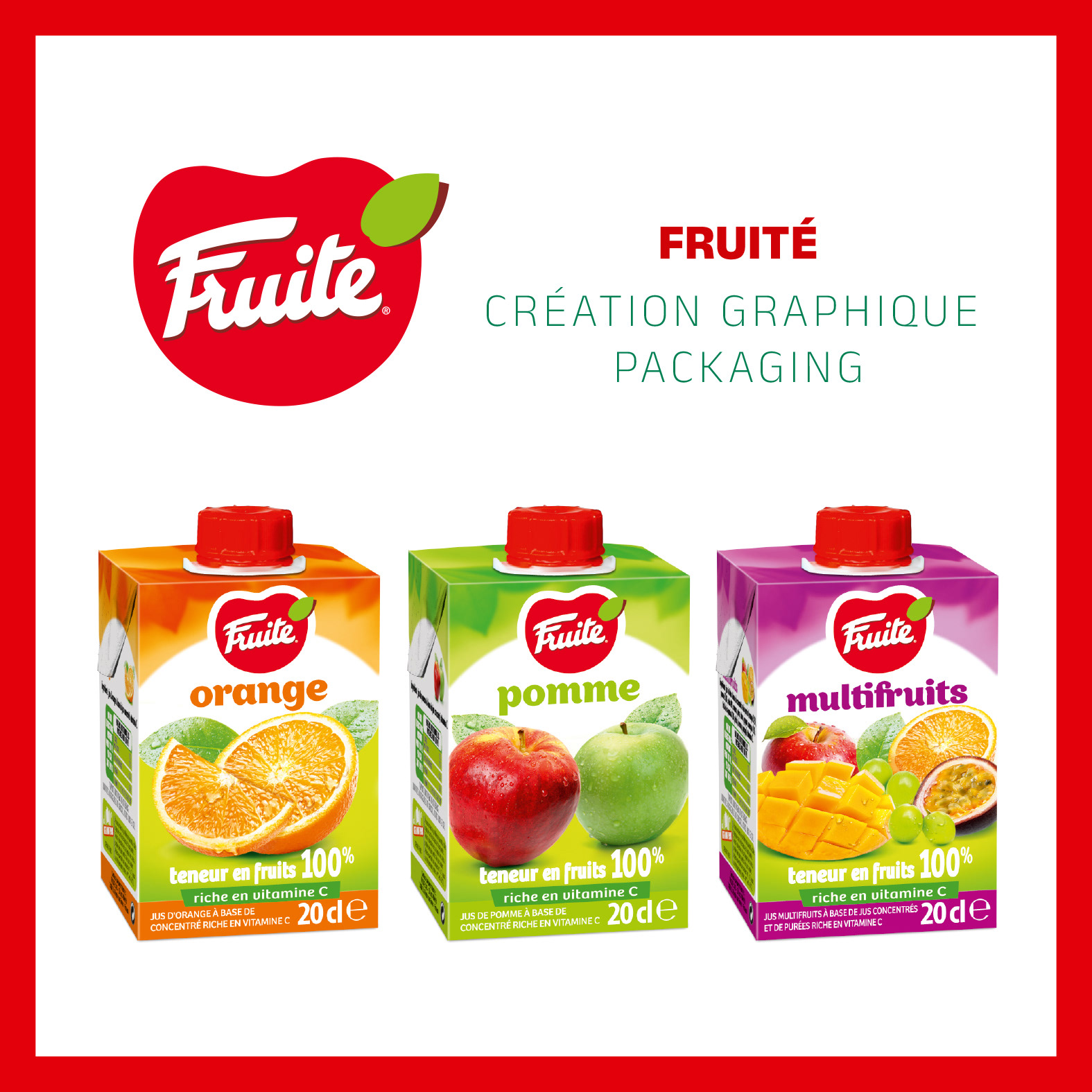 Création graphique des gammes de packaging des jus de fruits pour la marque Fruité.