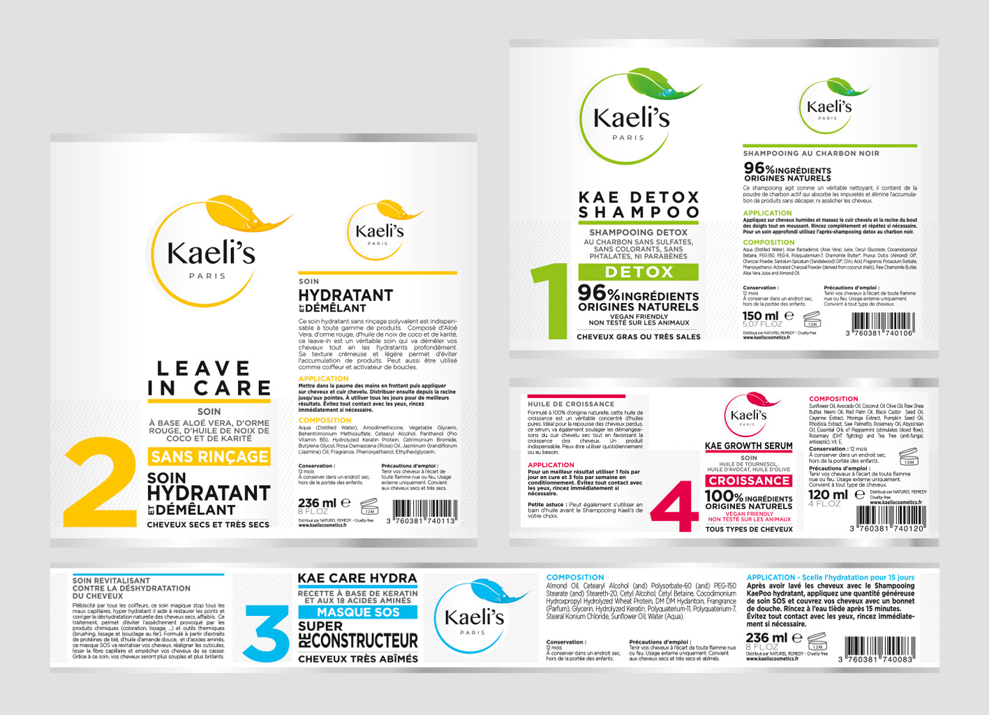 Création graphique des packagings de la marque de cosmétique Kaeli's.